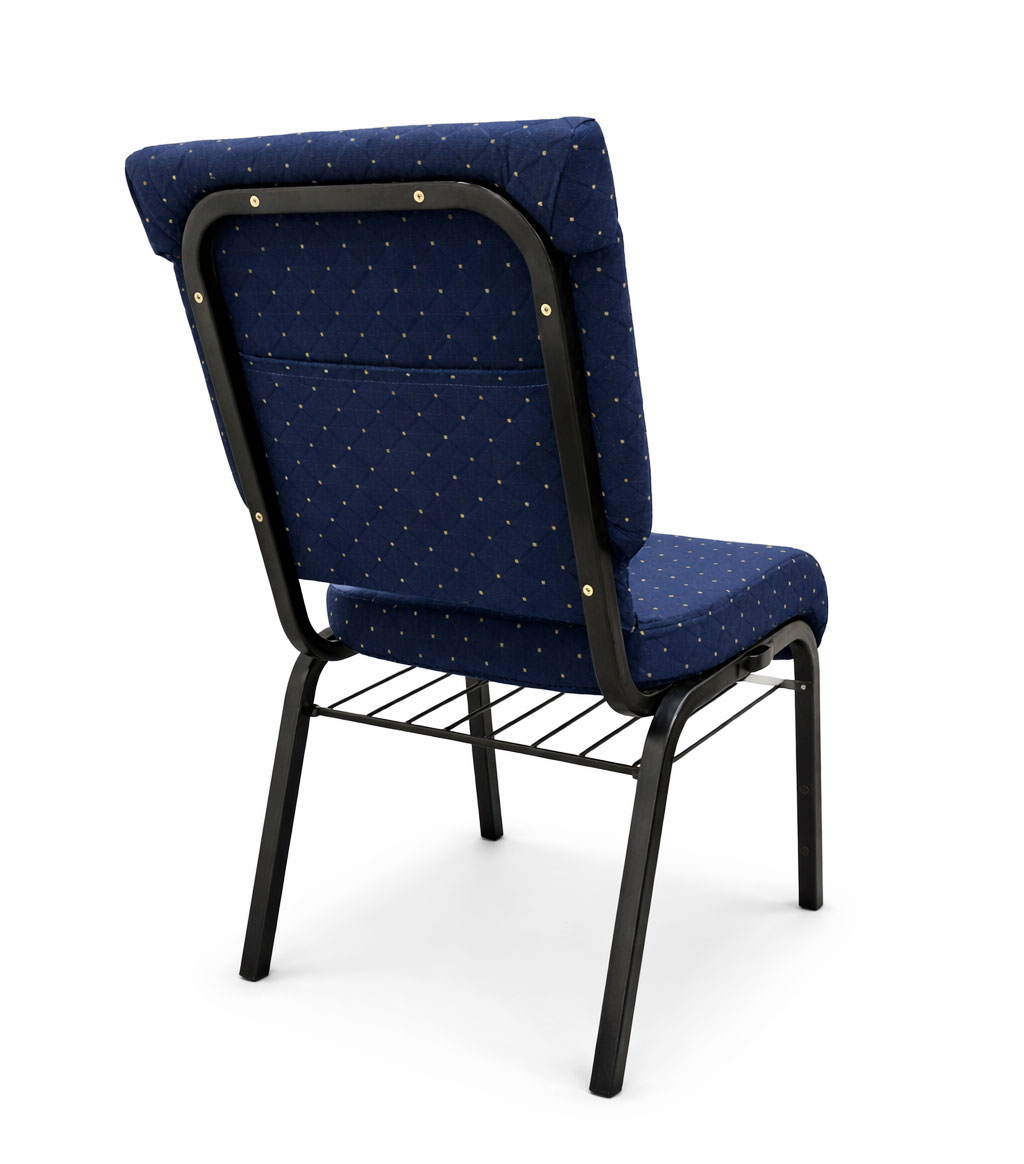 - Under-Seat Book Rack – Durable metal book rack provides convenient storage for Bibles, books, or materials during use.